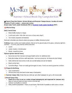 Parent Info Monkey Business Camp